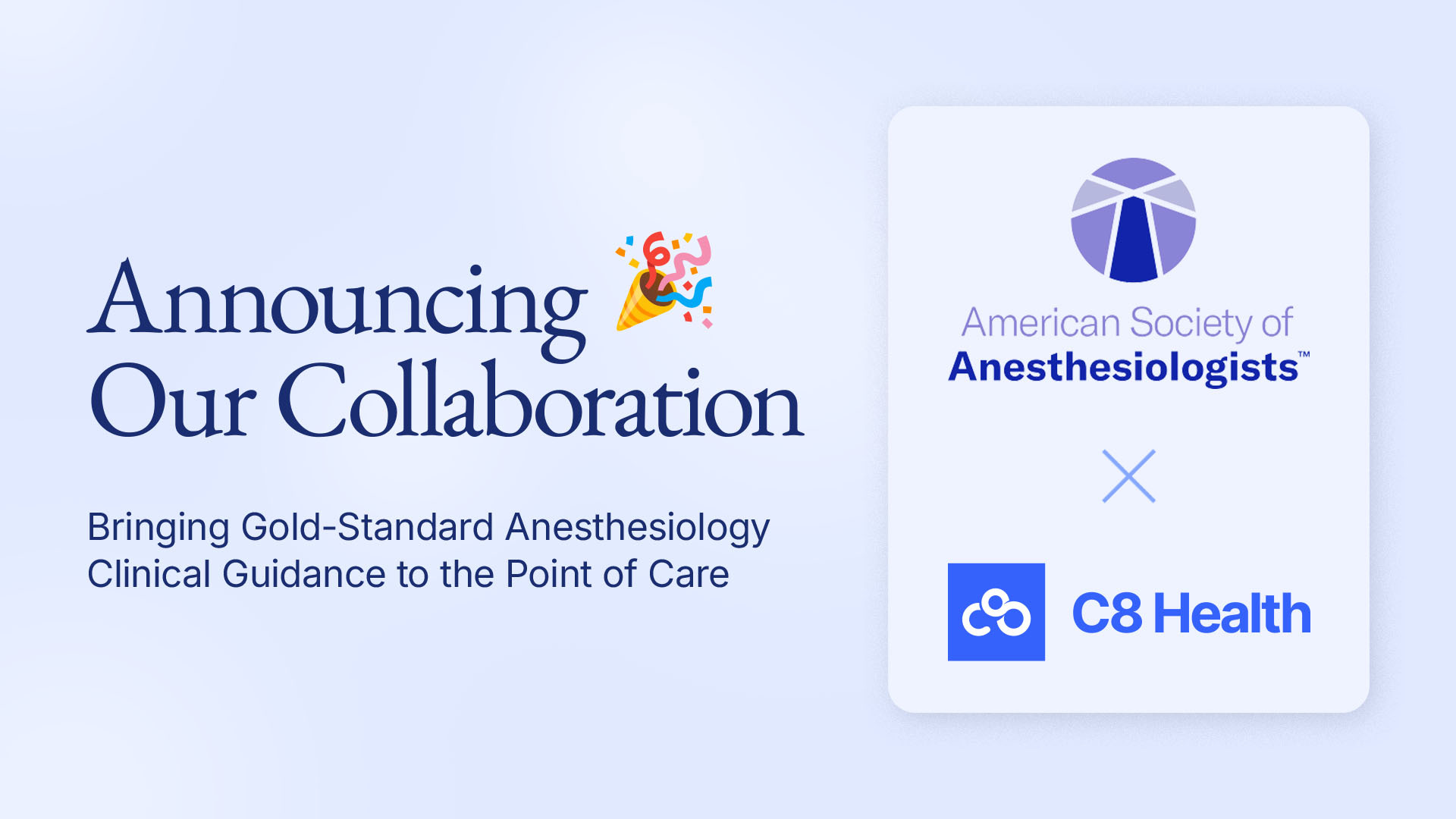 "We are thrilled to collaborate with ASA to make their trusted guidance accessible to thousands of clinicians," said Galia Rosen Schwarz, CEO and co-founder of C8 Health. "Using our AI-powered solution, hospitals can easily stay current with the latest ASA perioperative guidance, while society leadership gains real-world insights into guideline implementation and adoption gaps across the country."